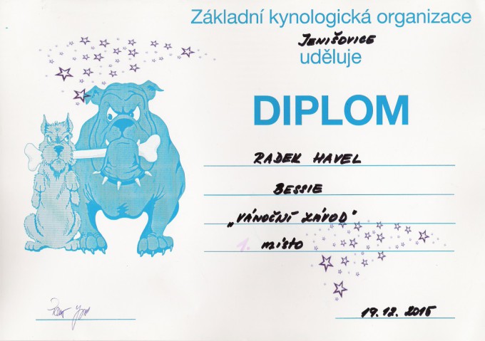 Dne 15.10.2016 pořádala ZKO Lomnice nad Popelkou 28. ročník Závodu dvojic dle ZVV1 a vložený závod jednotlivců dle ZZO. S Bessie jsme závodili v jednotlivcích, kde jsme s dalším soutežícím obdrželi stejný počet bodů. O umístění na 3. a 4. místě měl rozhodovat počet získaných bodů za aport a dále za přivolání. Jelikož bodové ohodnocení v těchto dvou cvicích bylo stejné, rozhodl los. My jsme si k naší smůle