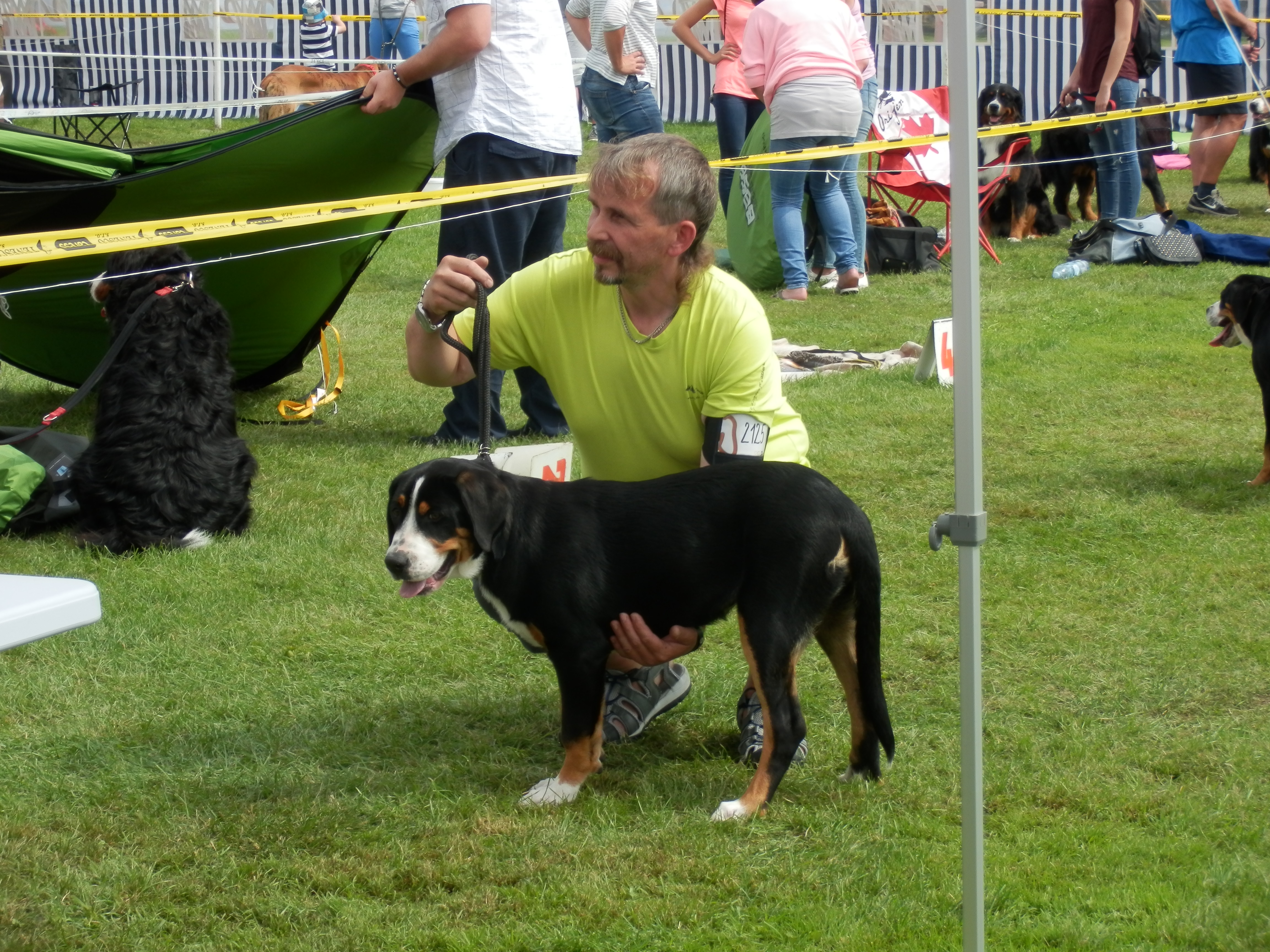 Letošní sezónu jsme zahájili XVIII. Pojizerskou krajskou výstavou psů, která se konala dnes v areálu Na Krásné louce v Mladé Boleslavi. Plemeno Velkého švýcarského salašnického psa posuzoval rozhodčí Ladislav Kukla. Eliška byla posuzována ve třídě mladých a oceněna známkou VD1. Bess byla posuzována ve třídě pracovní a oceněna známkou V1 a získala titul Vítěz třídy (VT) a Krajský vítěz (KV).